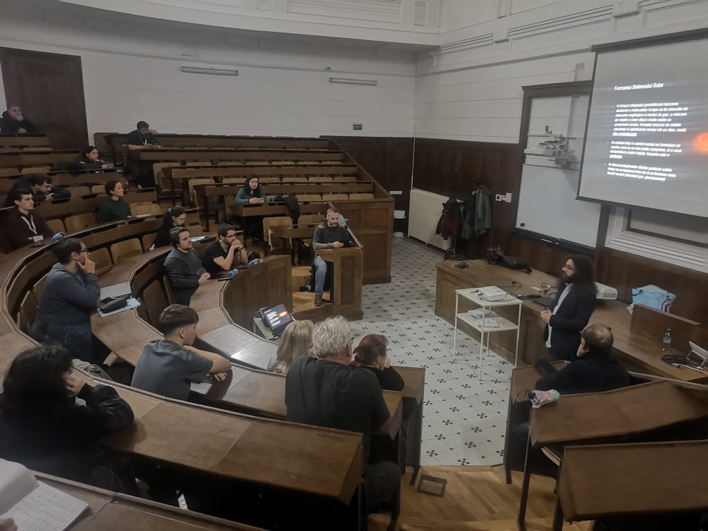 A patra ședință a cursului nostru de astronomie s-a desfășurat săptămâna trecută (joi 6 noiembrie 2025) în amfiteatrul Voinov al Facultății de Biologie din București.
