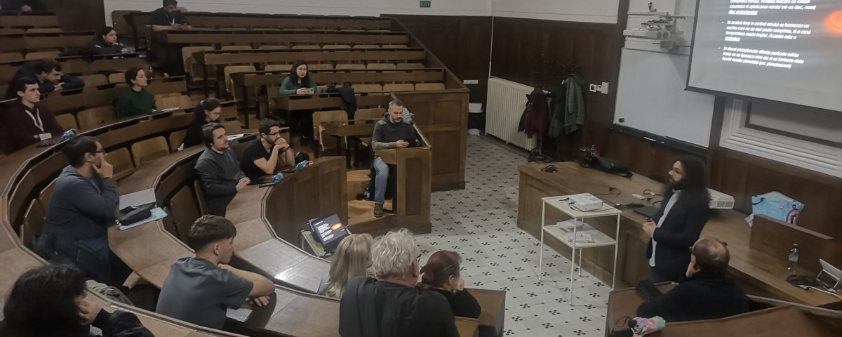A patra ședință a cursului nostru de astronomie s-a desfășurat săptămâna trecută (joi 6 noiembrie 2025) în amfiteatrul Voinov al Facultății de Biologie din București.