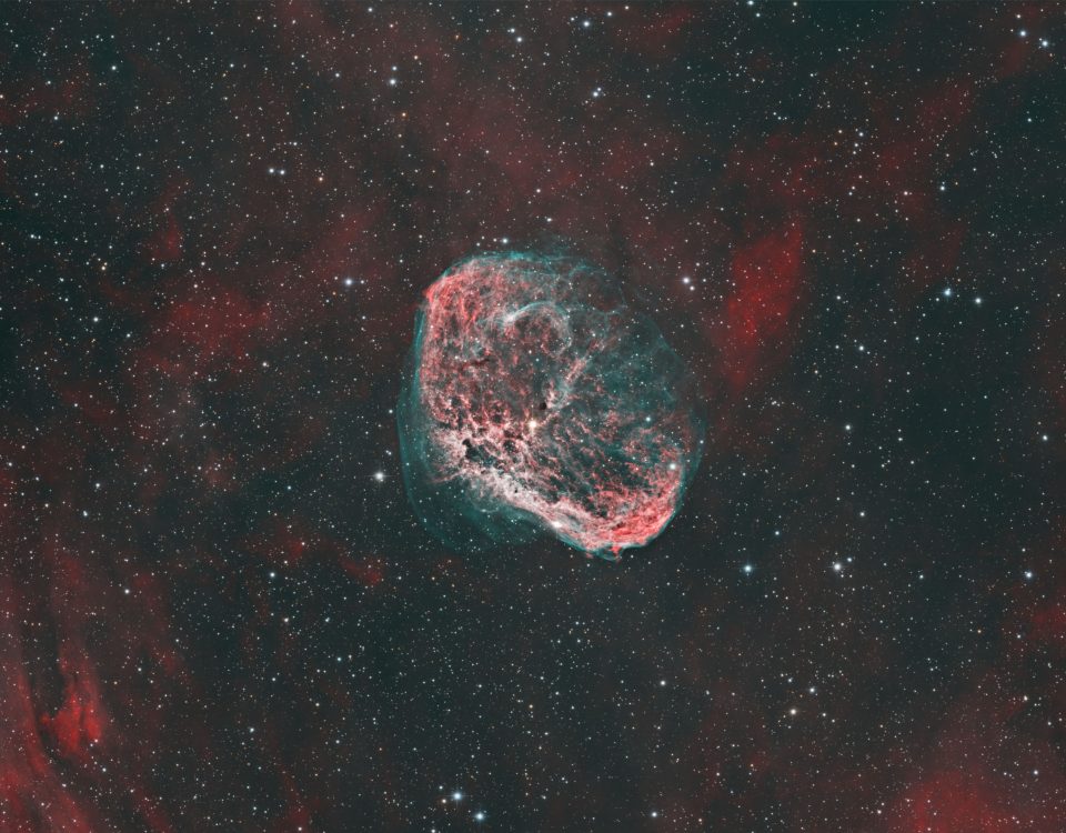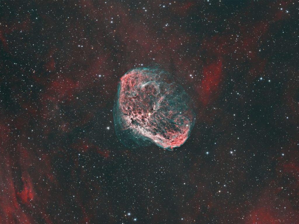 Sharpless 2-132 is primarily an emission nebula and is estimated to be roughly 10.000 light-years away in the Perseus Arm of the Milky Way Galaxy. Two Wolf-Rayet stars have been identified in the Lion Nebula (HD 211564, HD 211853 = WR 153) and are responsible for ionizing the gas in this region. Wolf-Rayet stars are at least 20 times more massive than the sun and represent a ‘final burst of activity‘ before they begin to die and eventually go supernova.