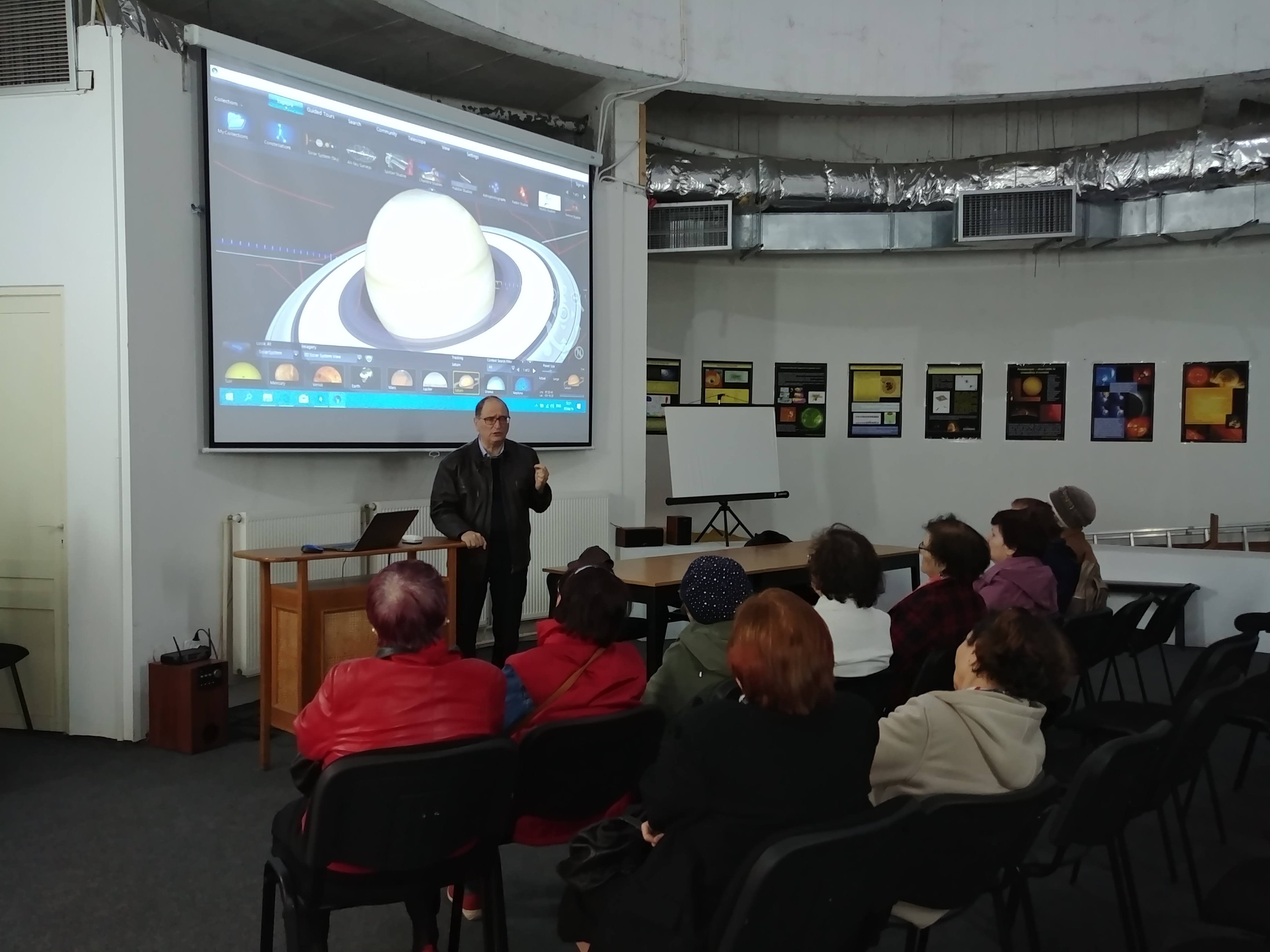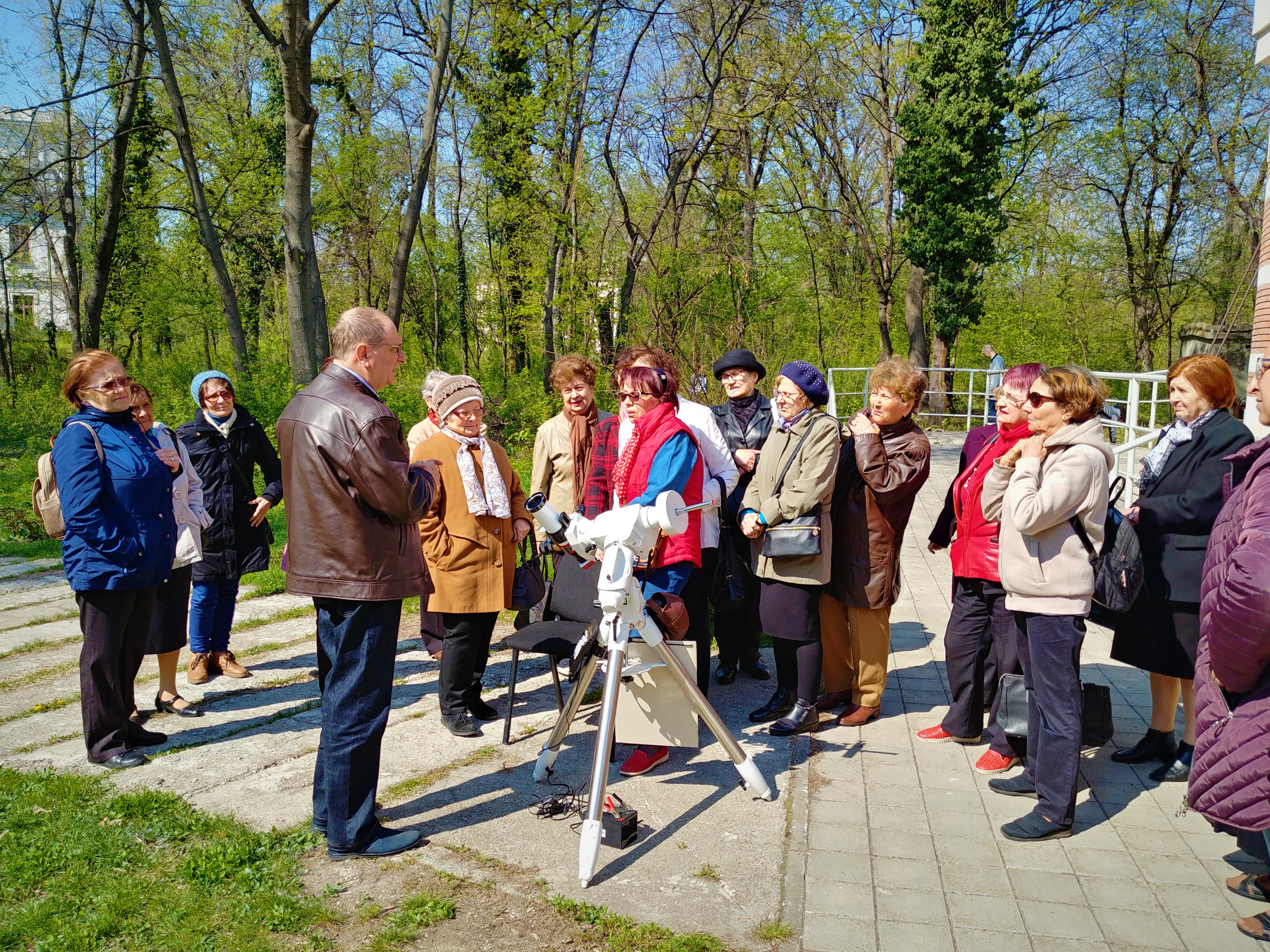 Pe data de 4 și 5 martie 2019 Institutul Astronomic al Academiei Române și Astroclubul București au primit într-o vizită de lucru un grup de 60 de membri de la Clubul Seniorilor Sector 3, cu ocazia desfășurării programului “Educație pentru toate vârstele”. Cu acest prilej participanții au vizitat Sala Lunetei Meridiane și Marele Ecuatorial din cadrul Institutului Astronomic unde au beneficiat de explicații și ghidaj de specialitate din partea Domnului Sorin Marin, documentarist în cadrul Institutului și membru al asociației noastre. Ulterior seniorii au efectuat observații astronomice la Soare prin luneta noastră solară cu care au observat protuberanțele iar apoi au participat în Sala Planetariu la o incursiune în constelațiile reper de pe bolta cerească și alcătuirea Sistemului Solar. Entuziasmul participanților a fost mare vizita prelungindu-se mult peste orarul inițial dovadă că astronomia este un domeniu incitant și educativ indiferent de vârstă. În perioada următoare vom continua seria de ateliere și prezentări pentru adulți și copii, așa că țineți aproape!