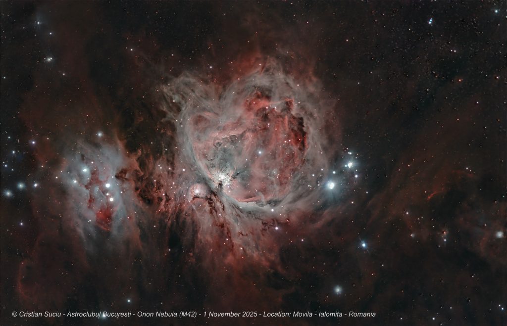 Data publicării: 24 noiembrie 2025 Messier 42 este o nebuloasă situată în constelaţia Orion, la sud de Centura lui Orion. Este una din cele mai strălucitoare